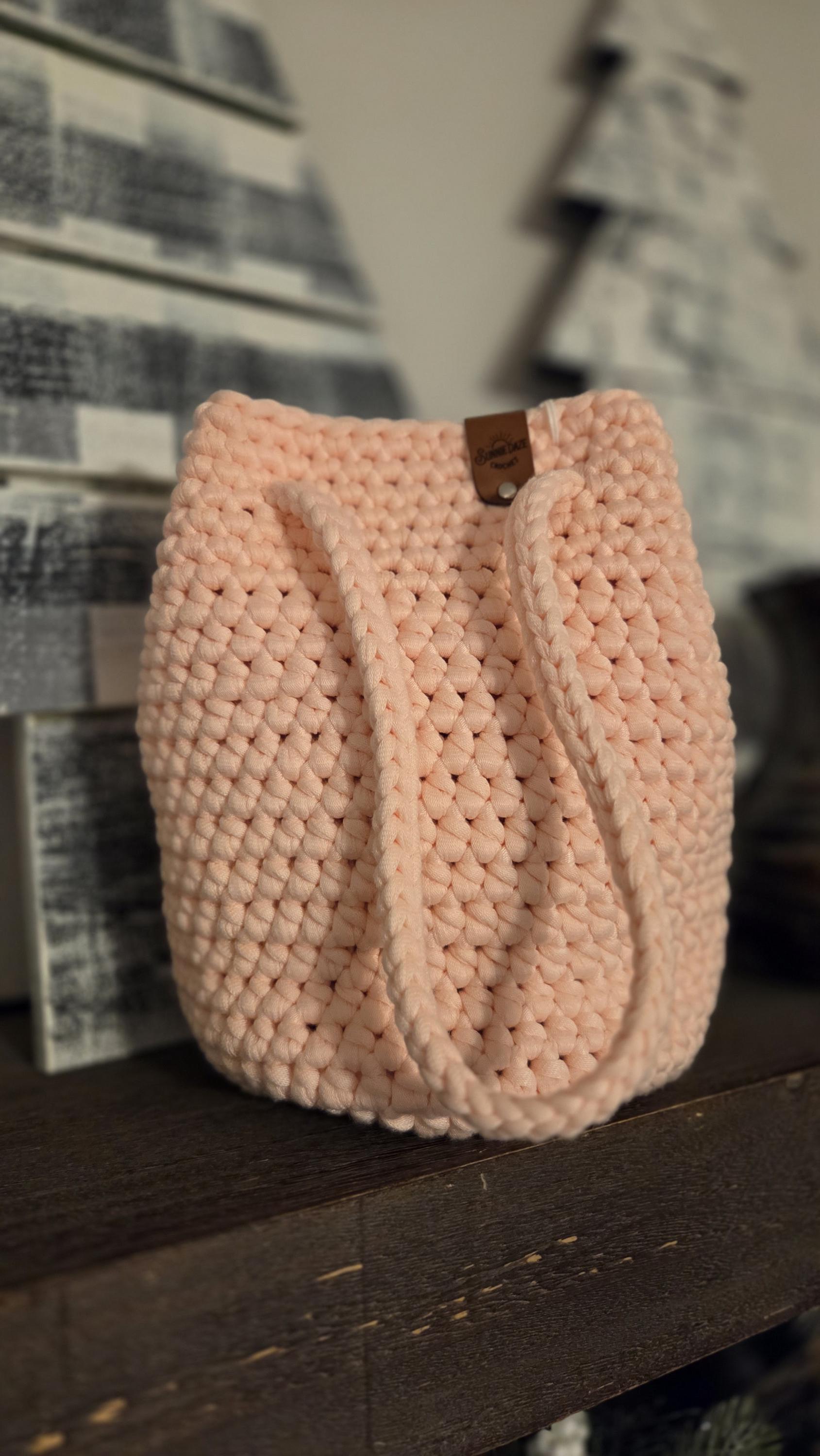 This handmade crochet handbag features a soft pink tone and a beautifully textured stitch for a clean, modern look. Crafted with thick, durable yarn, it’s sturdy enough for everyday use while still feeling soft and lightweight.